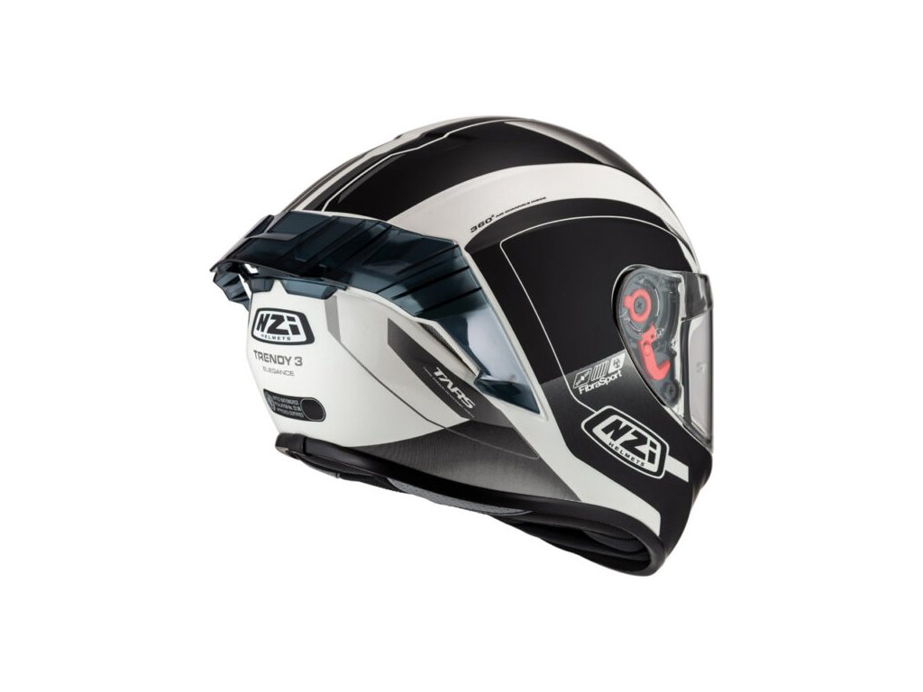 Motocyklová integrální helma NZI TRENDY 3 s integrovaným spoilerem, která splňuje normy ECE/UN R.22.06. Vyznačuje se výrazně sportovním designem skořepiny. Naprostá nezbytnost pro jízdu po silnici i krátké výlety. Moderní grafika, na rozdíl od mnoha jiných, udává trend pro mnoho dynamických motorkářů. Spoiler snižuje odpor vzduchu při vysokých rychlostech, čímž zlepšuje aerodynamiku a stabilitu. Součástí balení je náhradní tmavé hledí.