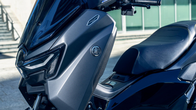Každý sportovní skútr Yamaha Tech MAX je vyroben podle velmi vysokých specifikací a model NMAX 155 Tech MAX se vyznačuje řadou exkluzivních detailů, které posilují hrdost na vlastnictví. Vysoce kvalitní dvojité sedlo má speciální potah imitující vzhled černé kůže se zlatým prošíváním, semišovými detaily a svařovaným reliéfem. Tento prémiový model je k dostání v barvách Crystal Graphite a Midnight Black.