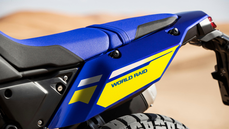 Schránka vzduchového filtru modelu Ténéré 700 World Raid byla navržena tak, aby zvládla extrémní terén, pro který je tenhle adventure motocykl na dlouhé vzdálenosti určený. Vzduchové sání má sice stejný objem jako u modelu Ténéré 700, ale jeho sací potrubí směřuje dopředu, což má zabránit vnikání prachu a nečistot odhazovaných zadním kolem.
